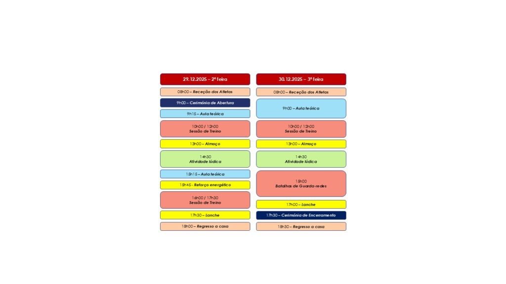 Os Guarda-redes inscritos terão direito a: Reforço nutricional, Almoço e Lanche de acordo com o programa;